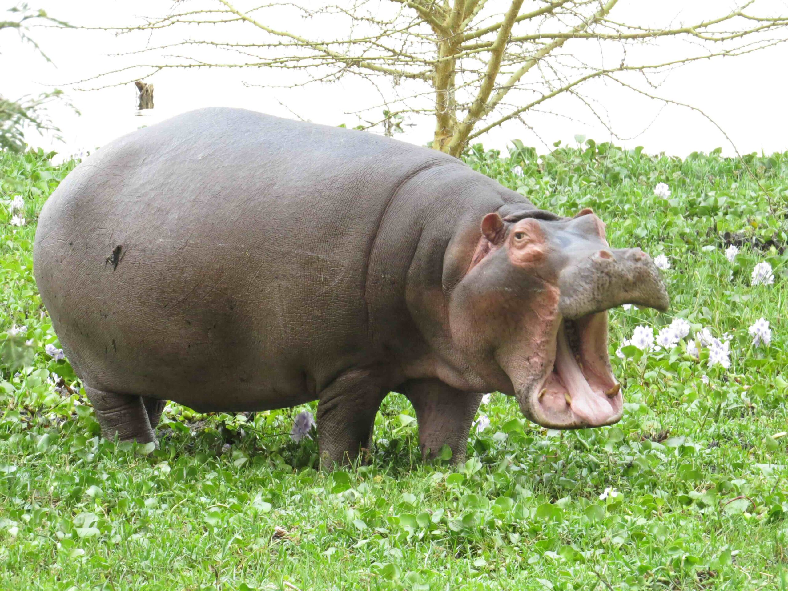 As we pulled into the campsite, on Lake Naivasha, two large eyes and ears looked at us from the water’s edge. Hippos!